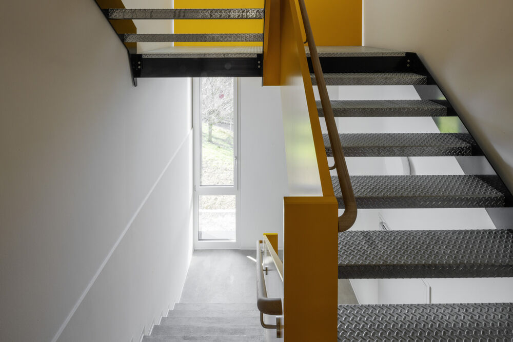 Der Zwischenbau wurde nach den Vorgaben des Energiegesetzes umgesetzt, eine Zertifizierung nach Minergie war nicht angestrebt. Die statischen Berechnungen des IST-Zustand haben gezeigt, dass das Deckensystem der Passerelle nur marginale Reserven aufweist. Die Aufstockung musste deshalb in Leichtbauweise (Holzbau) erfolgen. Zur Ertüchtigung der Decken waren zusätzliche Stahlstützen und Stahlträger erforderlich.