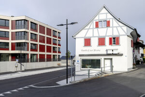 Anbau an Altersheim der 70er Jahre unter Einbezug der bestehenden Umgebung, insbesondere des vorgelagerten Dorfplatzes. Neuorganisation der Pflegeabteilungen.